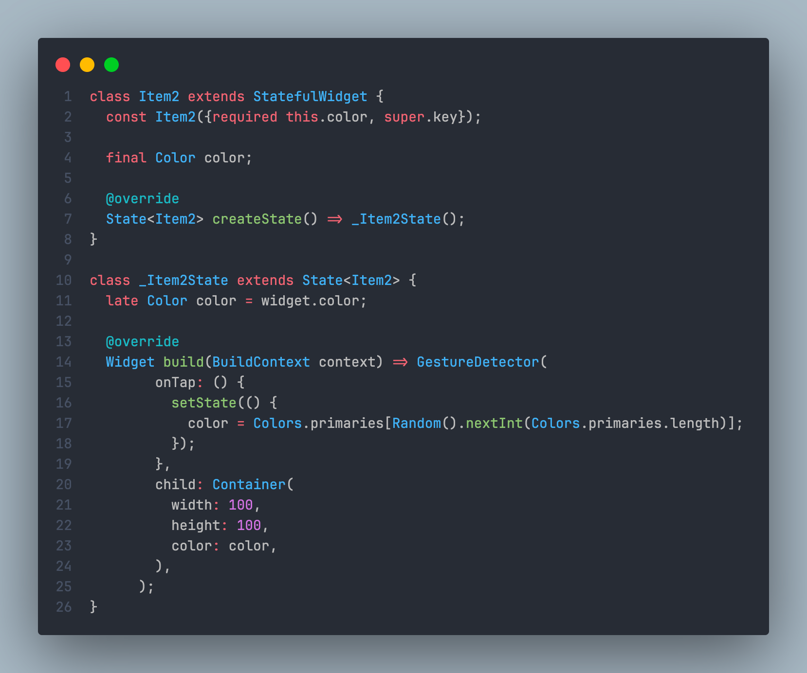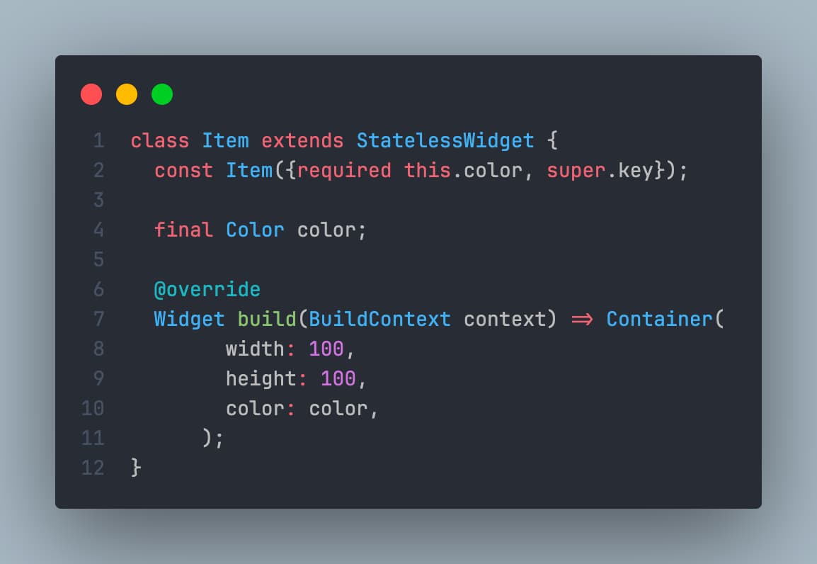 The StatelessElement that previously contained widget "A" has now been updated with widget "B", and the element that contained widget "B" is now updated with widget "A". Frequently, this implies that the renderObject has been updated with the latest parameters. In fact, you may already grasp the problem at this point, but let us move ahead and alter that Item into a Stateful Widget. It will change the provided color when it is clicked.